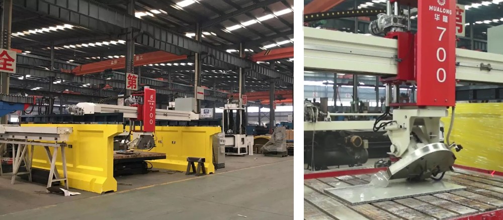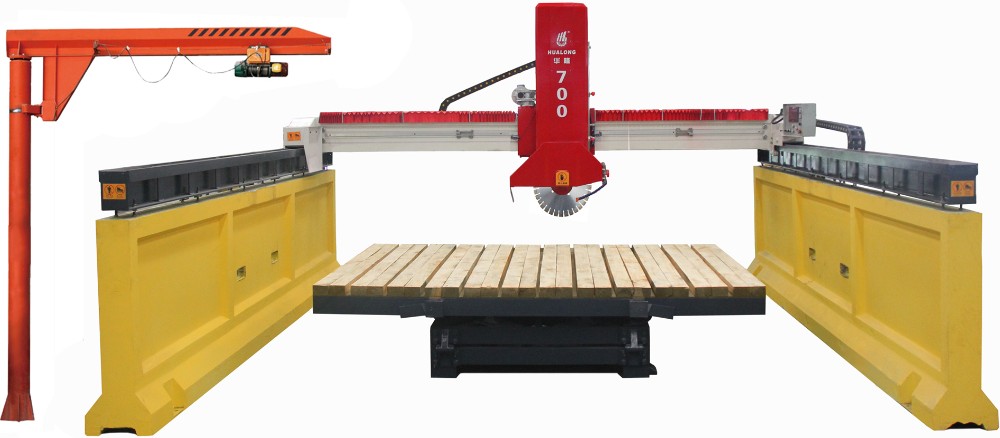 Because the infrared automatic bridge machine is equipped with a veneer machine, so cutting stone is completely automated control, only need to enter the required size to obtain the corresponding size of the plate. It is the preferred equipment for stone processing plant in recent years. In recent years, Hualong Stone Machinery Co., Ltd. has developed a machine head can be adjusted to the angle of the model, can cut bevelled edges, double bevelled edges, etc., greatly adapted to a variety of requirements for cutting edges.