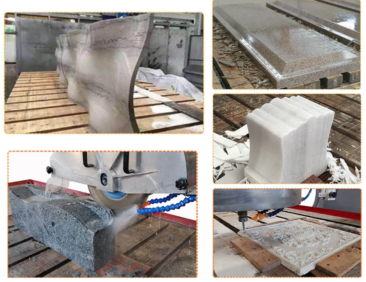 HKNC-825: 具有五軸聯(lián)動控制,可實現(xiàn)不同復(fù)雜曲面的加工、仿形,如廚房臺面、浴室梳妝臺臺面、墓碑、藝術(shù)裝飾板材&巖石雕塑等...